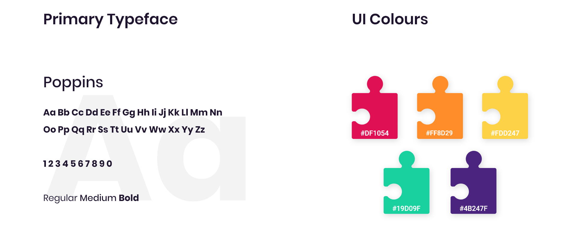 The client was the sort who already knew exactly what she wanted. That, accompanied by the UX research done already by my predecessor for the project, allowed me to focus solely on the visual side of it. She knew exactly how she wanted the user journey to flow and even went so far as to supply me with all the necessary colours and references.The puzzle piece logo represents the perfect fitting of candidate and agency, and the client wanted to retain that, but give it a more modern and clean look since, previously, some of the detail would get lost at smaller sizes.Poppins was the font we settled on for the logo and decided to carry it through to the interface as well. It gives that clean, minimal look with a touch of femininity, just to accentuate the approachability the system was meant to convey.
